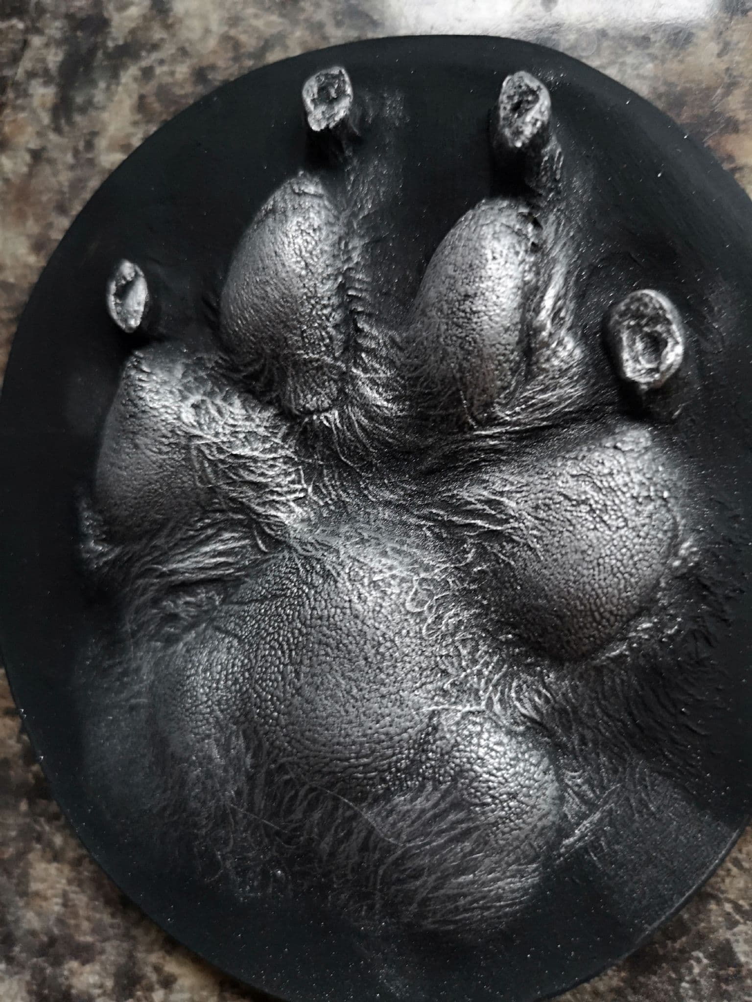 Our gorgeous stone pawprints have become very popular. They are created by first of all taking your furry friend's print into soft clay. Do to the nature of the process, these prints are taken in person at any of our print taking events or by some of our specialist partners.